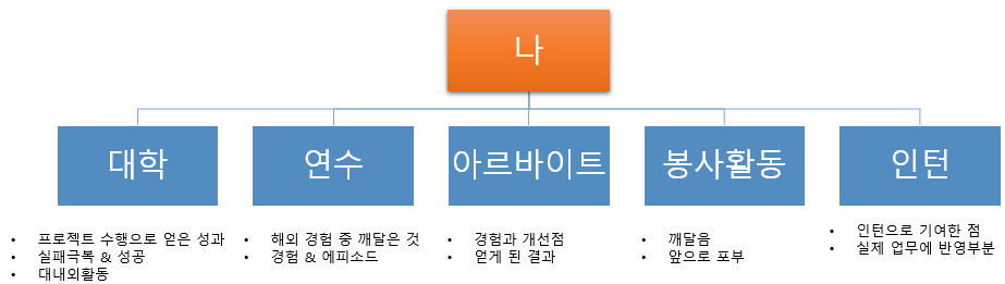 자신에 대한 경험을 분석하기 위해 기업의 사업 방향과 자신이 지원한 직무에 맞는 경험을 적어보자.