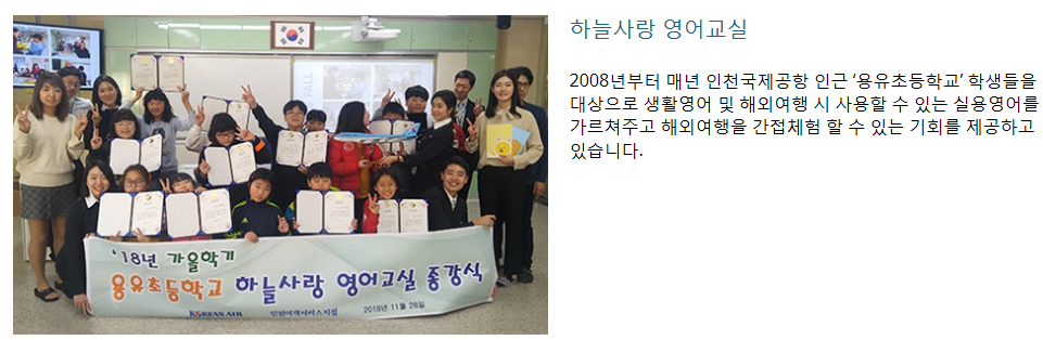 그리고 어린이들에게 꿈과 희망을 심어주기 위하여 매년 대한항공 격납고에서 <내가 그린 예쁜 비행기> 대회를 개최합니다. 1등 수상자에게는 문화체육관광부 장관상을 수여하고 보잉, 에어버스 등 항공기 제작 현장을 견학할 기회를 제공하는 한편, 1등 작품은 항공기 동체에 래핑 되어 전 세계 하늘을 누빕니다.