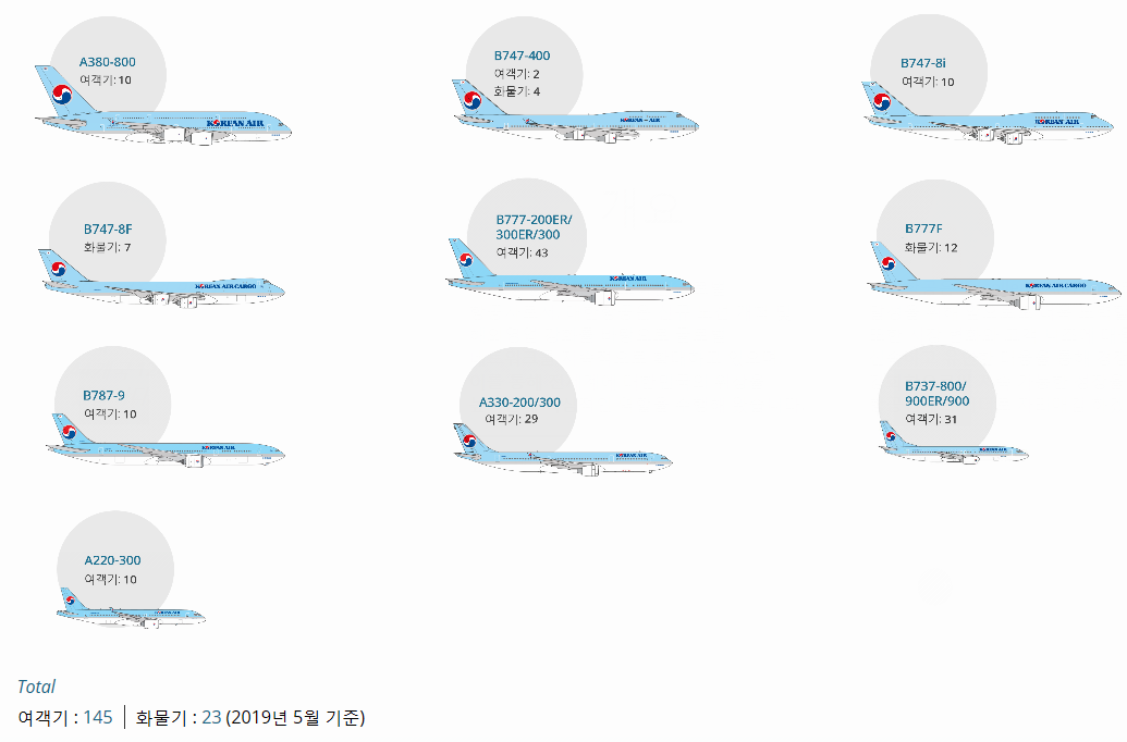 | 항공기 보유대수 | 168대(2019년 5월 기준) |
