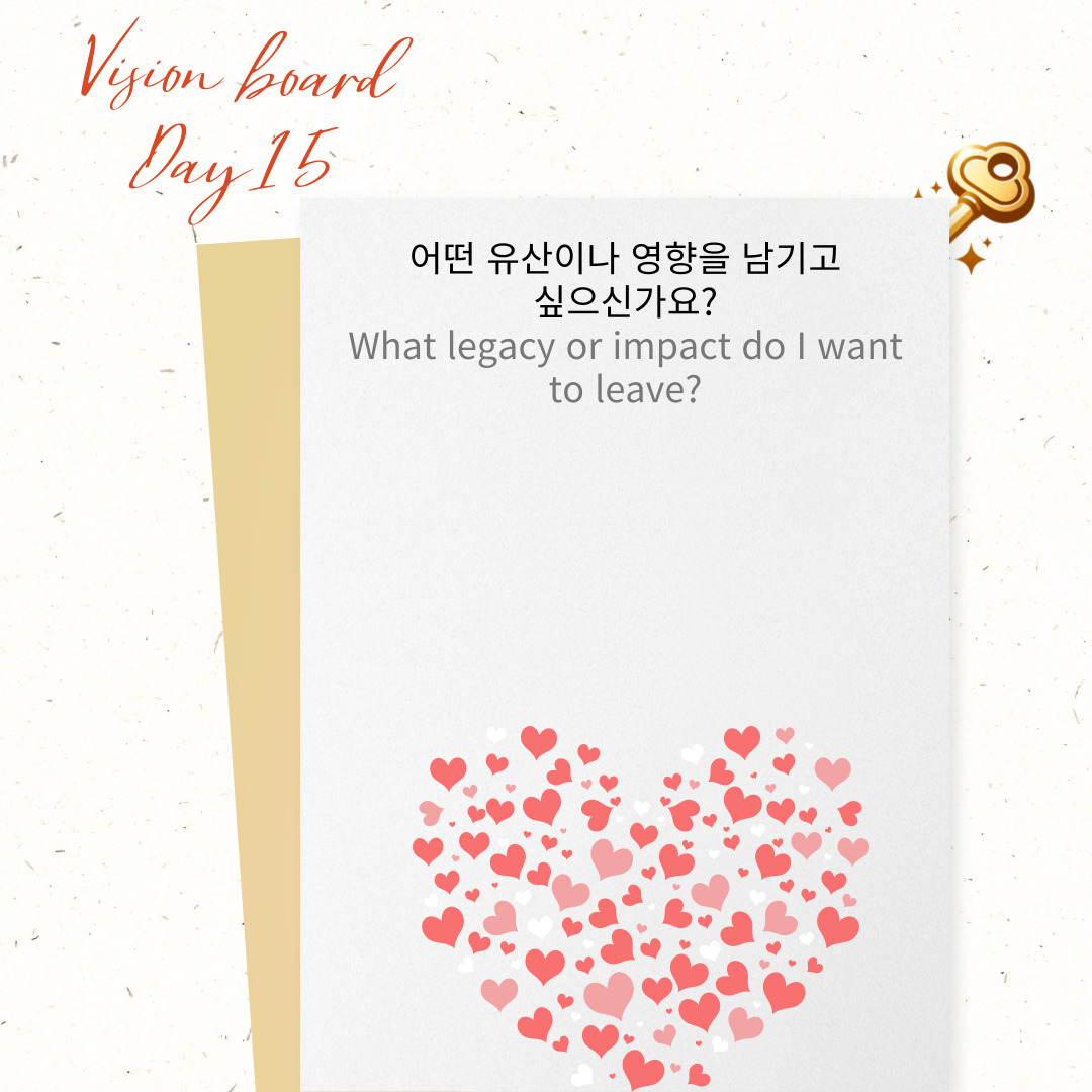 미라클 비전보드 비전보드 Day 8 ~ Day 15 by miracle-acts 2025. 1. 22. 8일차부터 15일차까지얼마나 놀라운 일기를 적어볼 수 있을까요? 공유하기 게시글 관리 miracle-acts 님의 블로그 '미라클 비전보드' 카테고리의 다른 글 비전보드 Day 1 ~ Day 7 (0) 2025.01.20 비전 보드 (0) 2025.01.20 관련글 비전보드 Day 1 ~ Day 7 비전 보드